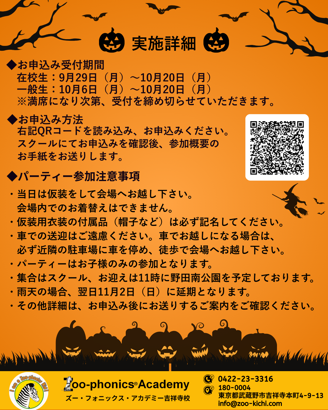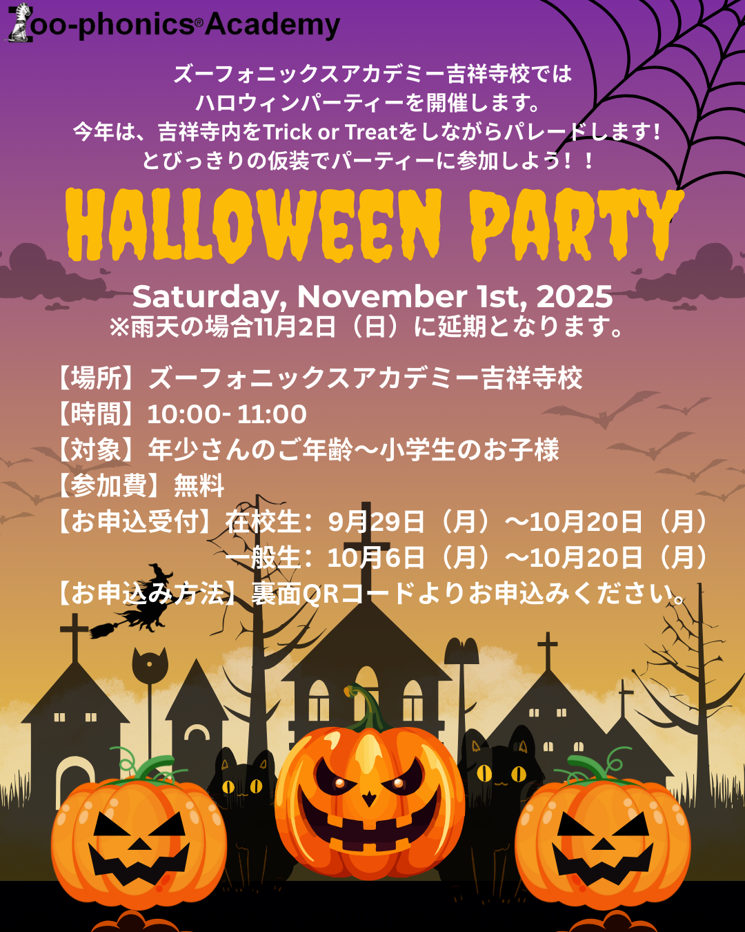 2025年 Zoo-phonics Academy吉祥寺校 ハロウィンパーティーお申込み