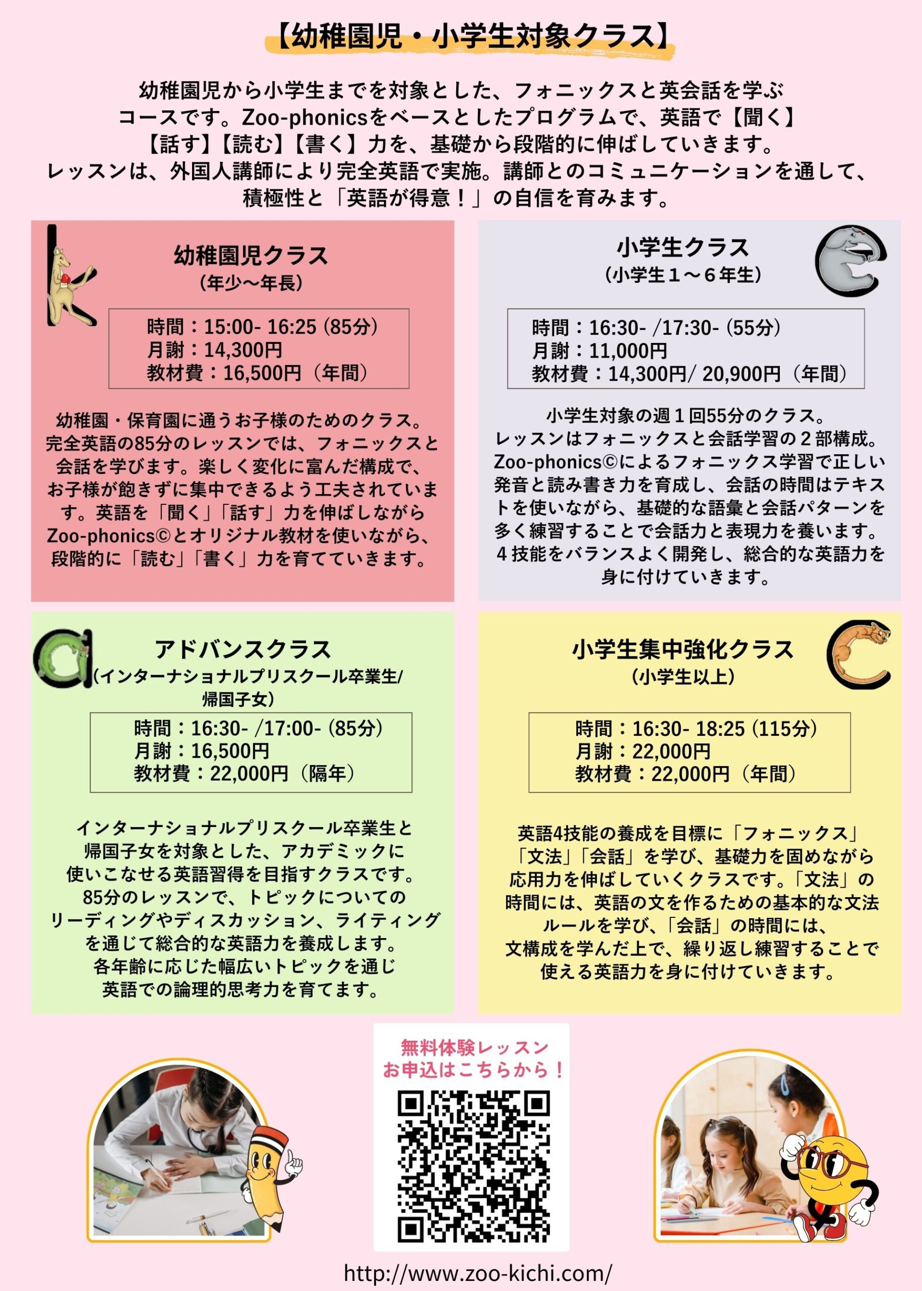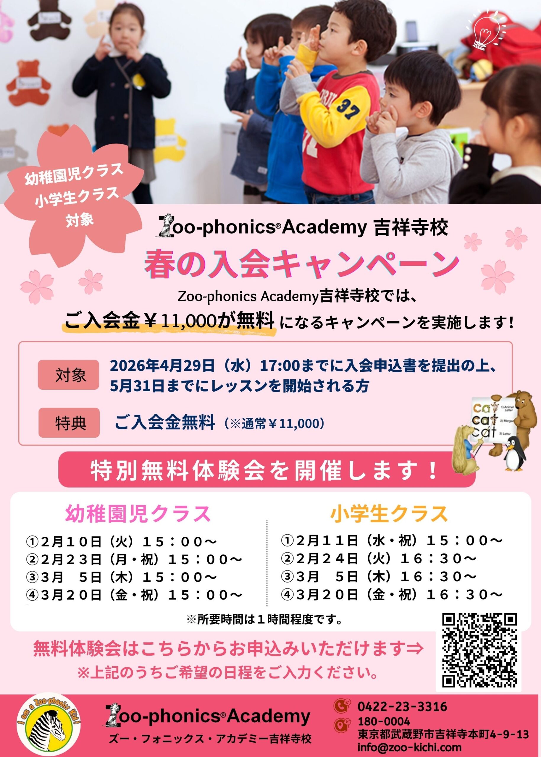 ぜひこの機会に、ズー・フォニックス・アカデミー吉祥寺校の英語教育を体験してください!