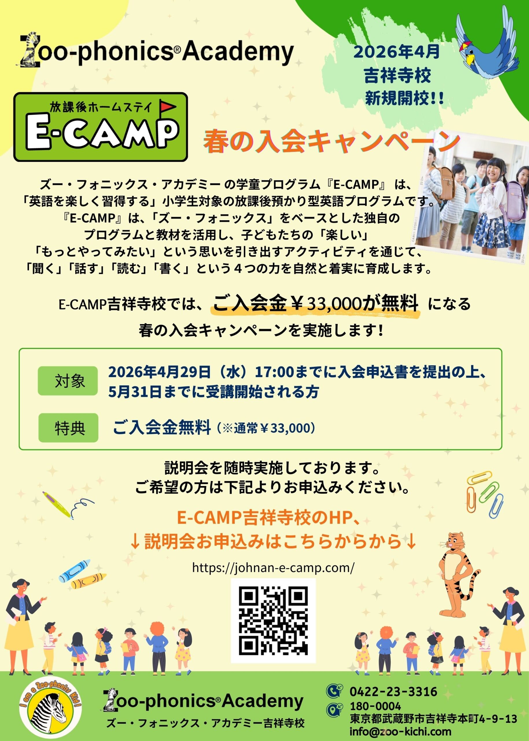 E-CAMP吉祥寺校(Zoo-phonics Academy吉祥寺内)
