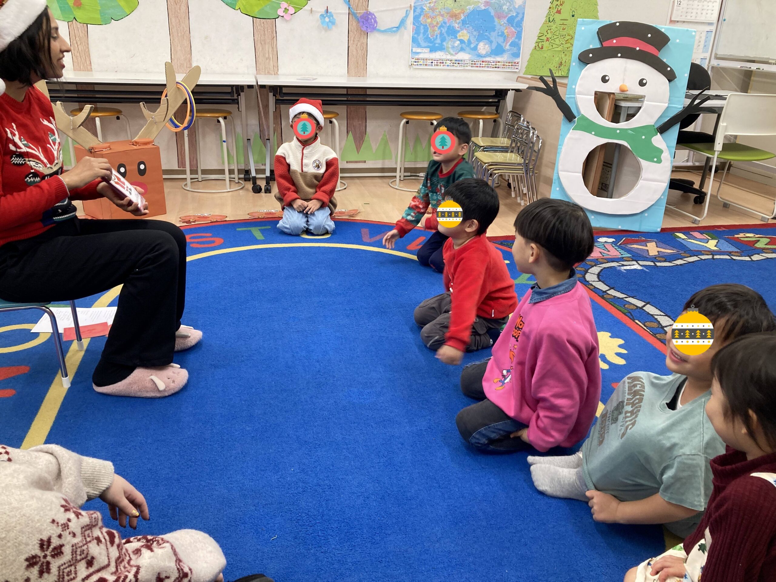 Christmas Songsを歌ったり、ゲームやプレゼント交換で楽しいひと時を先生と一緒に過ごしました。