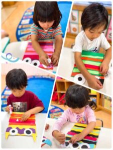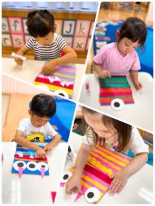 10月25日(土)のハロウィンパーティーに向けて、Treak or treat用のバッグを作っています。