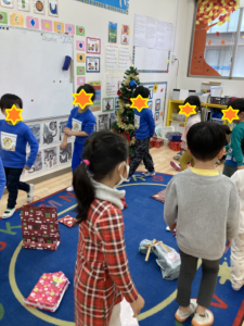 クリスマスパーティーでは皆でゲームをしたり、最後にはプレゼント交換などをして楽しみました。