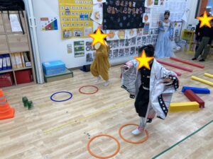 もちろんスタッフや普段レッスンを指導している講師達もコスチュームを着てお出迎えです!毎年先生達がオリジナルのゲームを用意し、お菓子だけではなく英語でゲームを楽しみます!