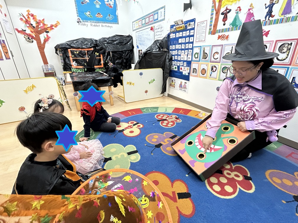 もちろんスタッフや普段レッスンを指導している講師達もコスチュームを着てお出迎えです!毎年先生達がオリジナルのゲームを用意し、お菓子だけではなく英語でゲームを楽しみます!